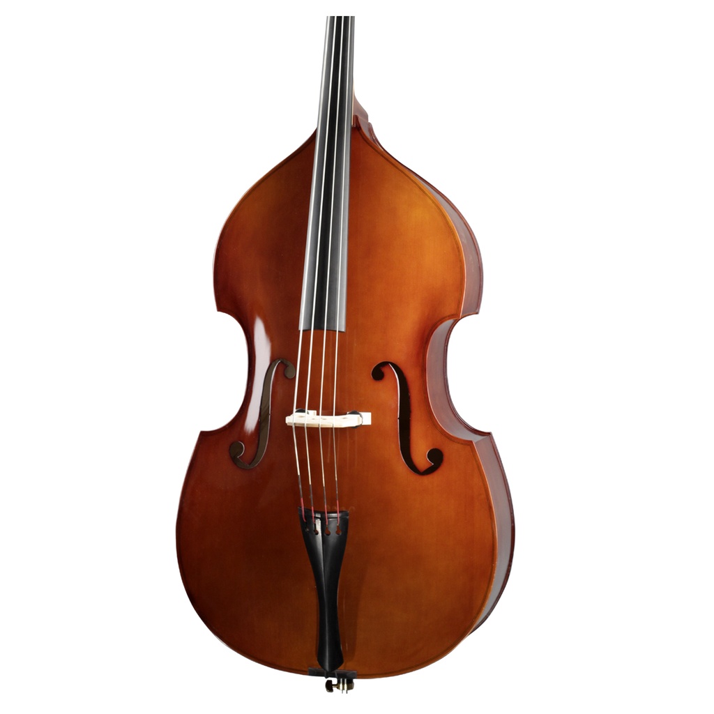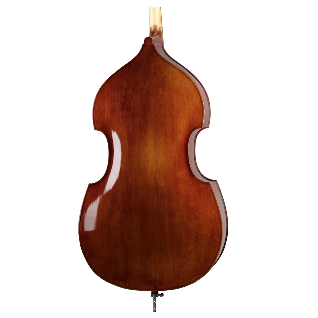 Gamba shaped double bass with a body made of veneered maple and veneered spruce for strength and a light weight. As a beginner, child, teenager or travelling hobby double bass player it is not easy to find a well-built, well-sounding and not too heavy bass at a good price. Our 4-string double bass has made a good name for itself with exactly these characteristics.