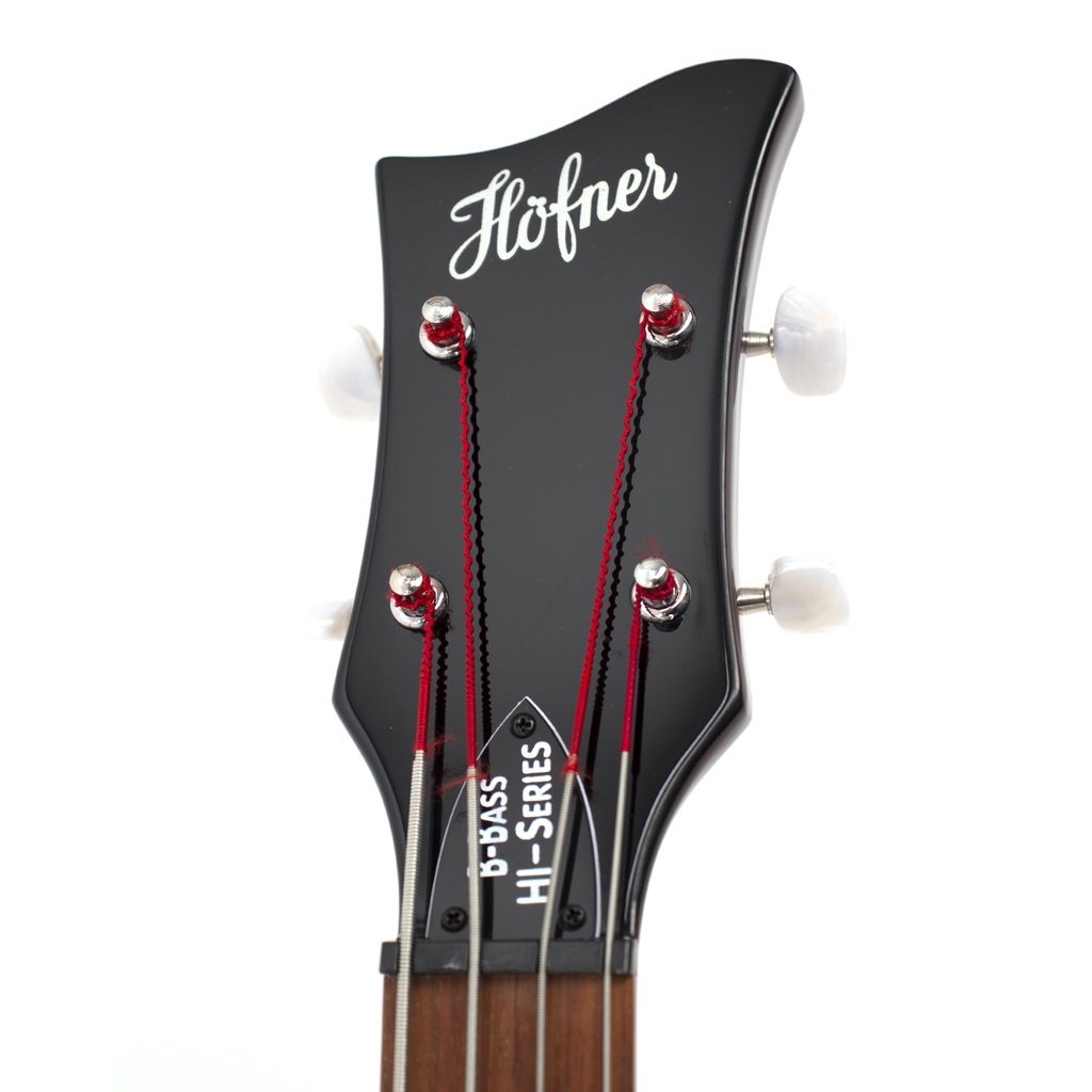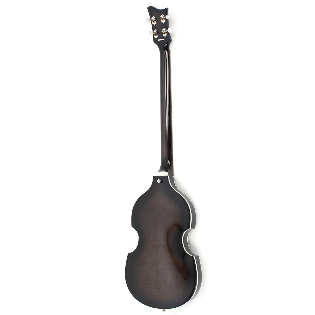 In addition to the classic control panel with Tea Cup knobs, they are equipped with a wooden bridge and trapeze tailpiece and carry the traditional Höfner logo on the body.