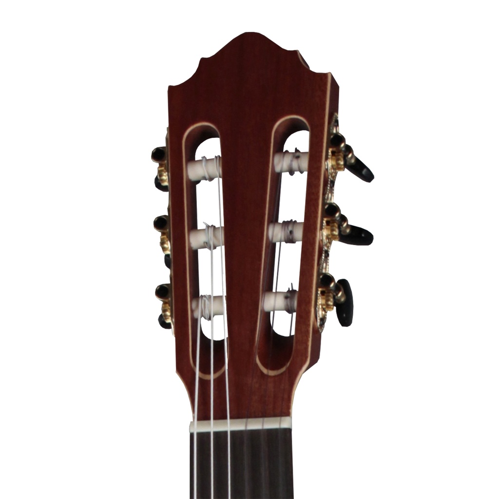 A solid mahogany body and a spruce top give a clear and balanced tone. The spruce top in particular was specially selected for the clarity of its bright tones and its excellent sound projection. The satin finish lends a stylish aspect to the instrument’s appearance, as well as aiding the sustained response and great dynamics.