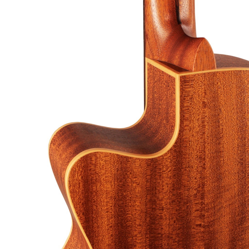 The cutaway version in this range, it is distinguished by its easy access to even the highest end of the fingerboard as well as the professional Höfner pickup system that employs the award-winning battery-free Mi-Si® preamp. A solid mahogany body and a solid cedar top give a warm and balanced tone. The cedar top in particular was specially selected for its percussive mid-range qualities and its warm and glowing tone, as well as explosive dynamics. The satin finish lends a stylish aspect to the instrument’s appearance, as well as aiding the sustained response and great dynamics.