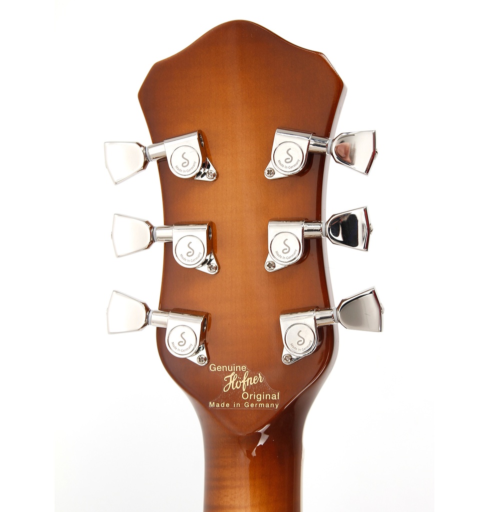 The Verythin is famous for its wide range of tones finding users from modern jazz right through to heavy rock. It is finished in Höfner Brunette, the gentle brown sunburst.